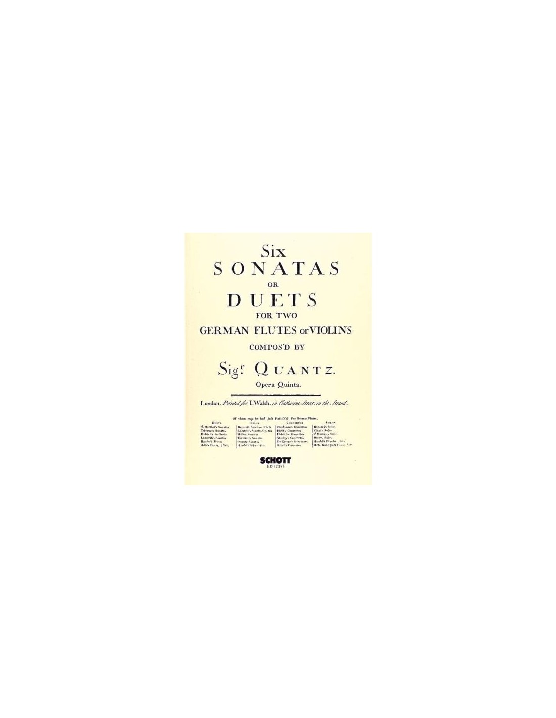 QUANTZ J.J.-Sonaten oder Duette (6) für 2 Violinen (2 Flöten)