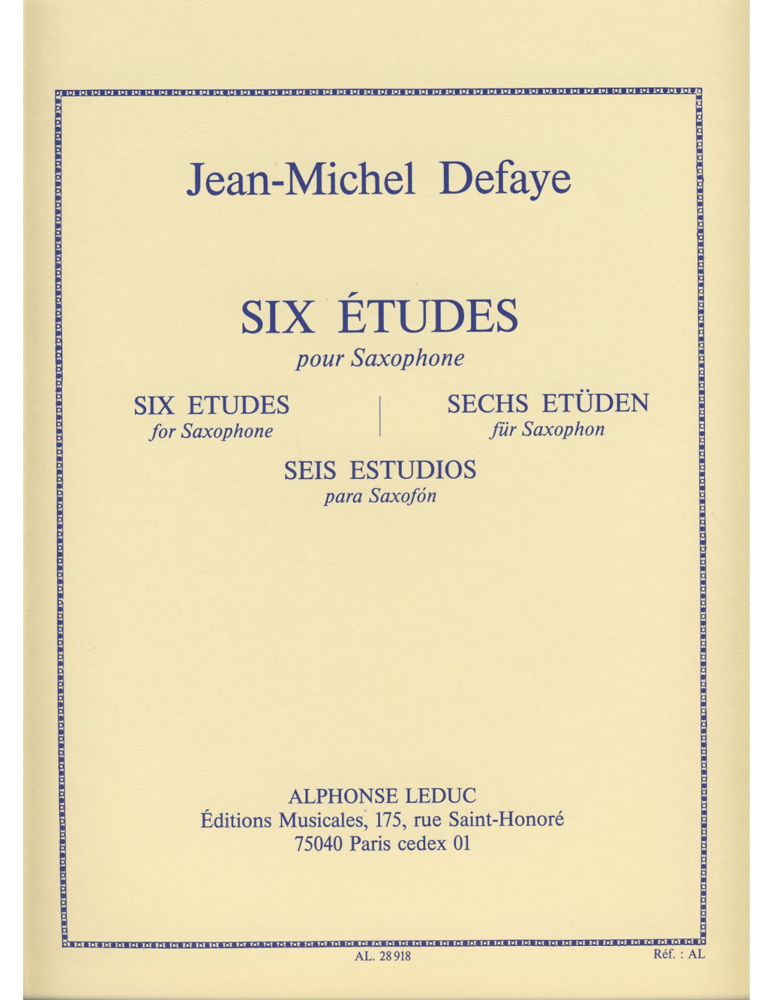 DEFAYE J.M.-Studies (6) for Saxophone