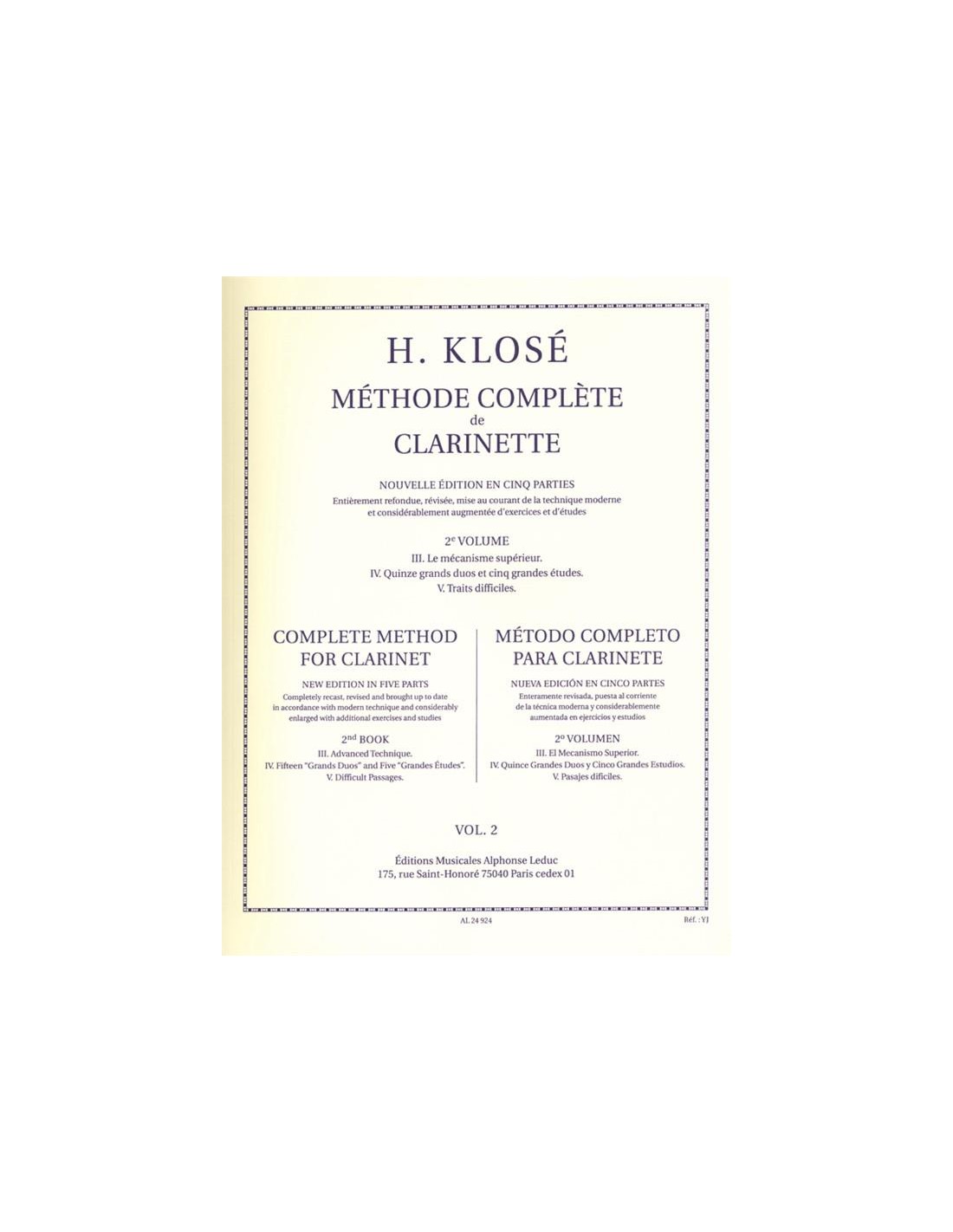 KLOSE H.E.-Methode Complete Vol.2 for Clarinet