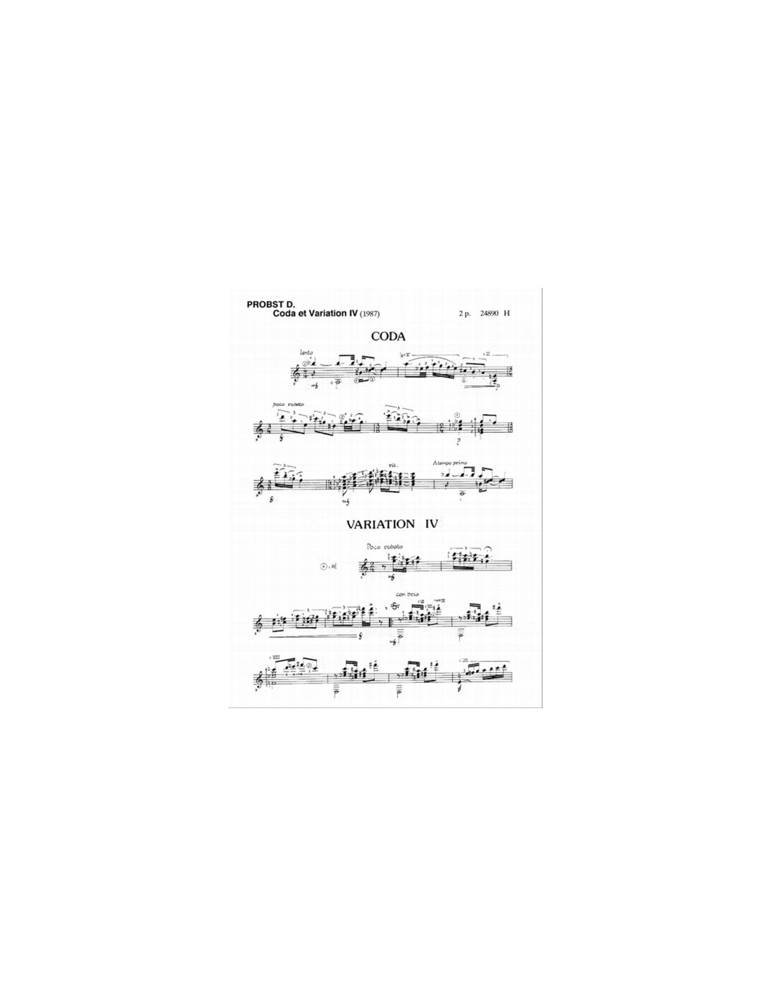 PROBST D.-Coda et Variations pour Guitare
