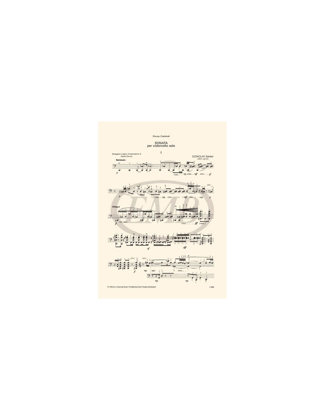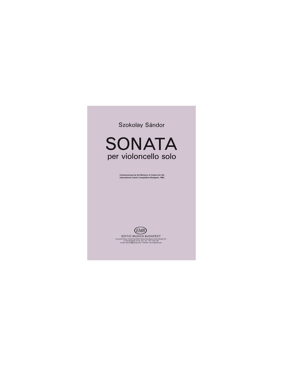 SZOKOLAY S.-Sonate pour violoncelle