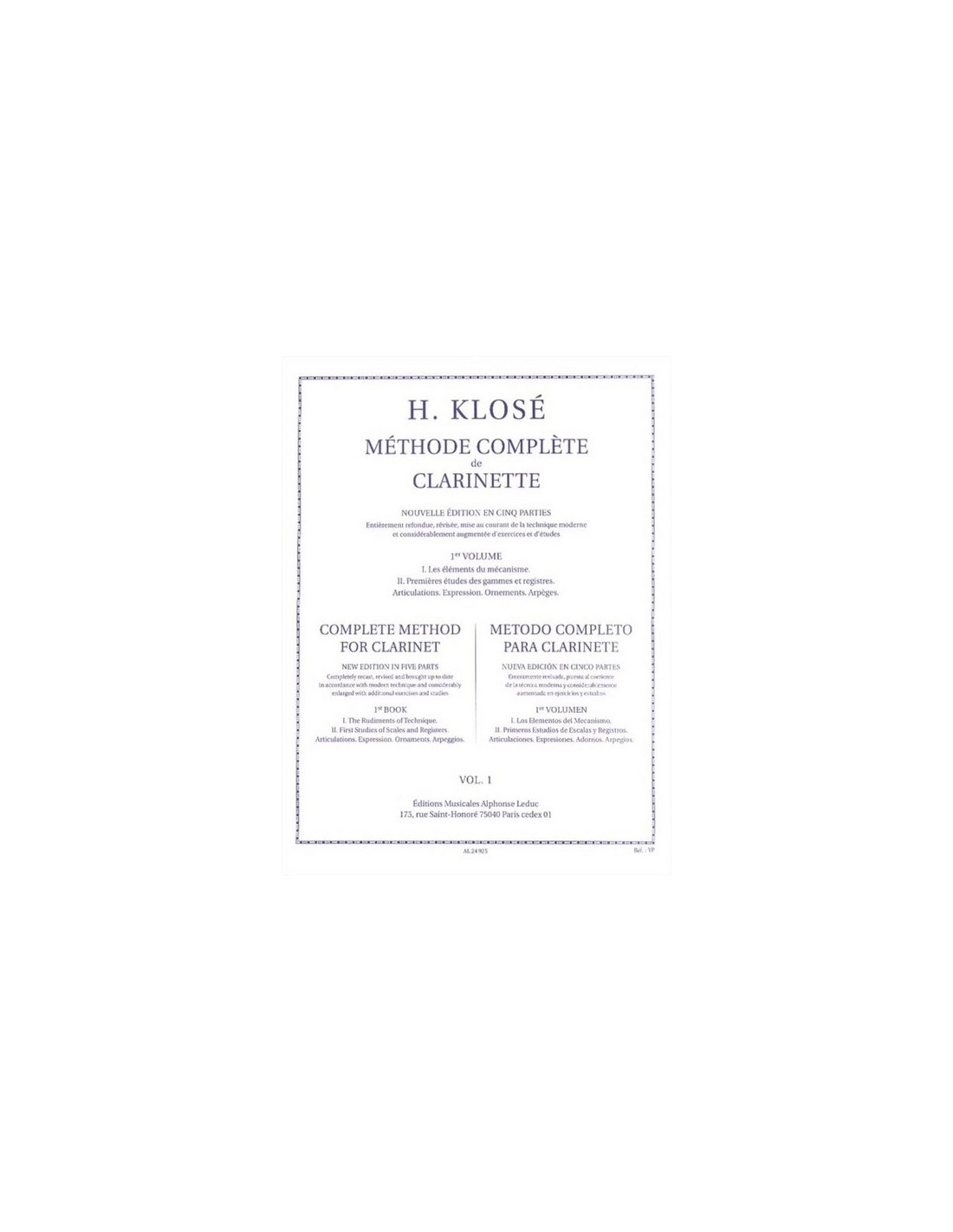 KLOSE H.E.-Méthode Complète de Clarinette Volume 1
